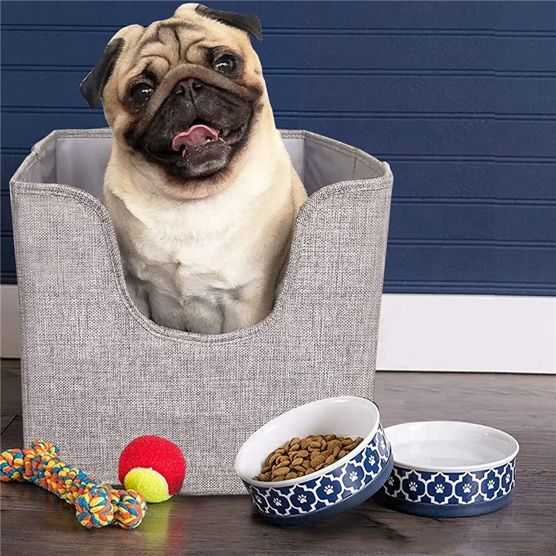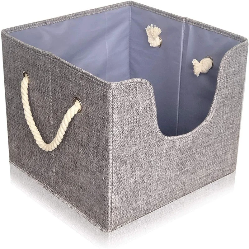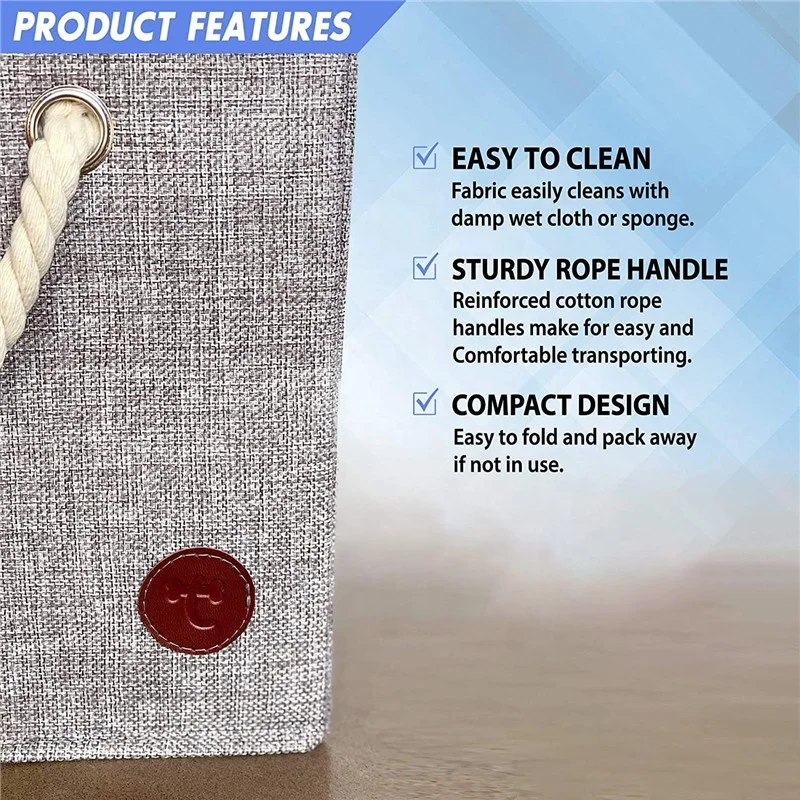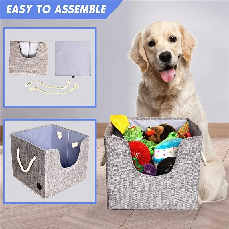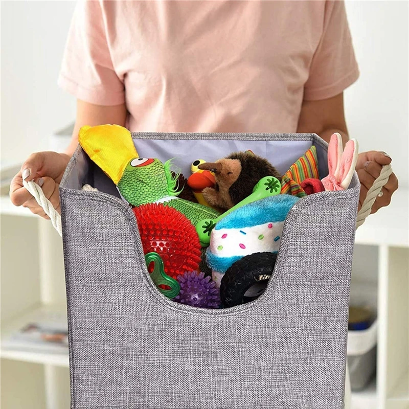 13 Inch Collapsible Storage Box Cotton Linen Dog Toy Storage Bin with Rope Handles for Toys Organizer