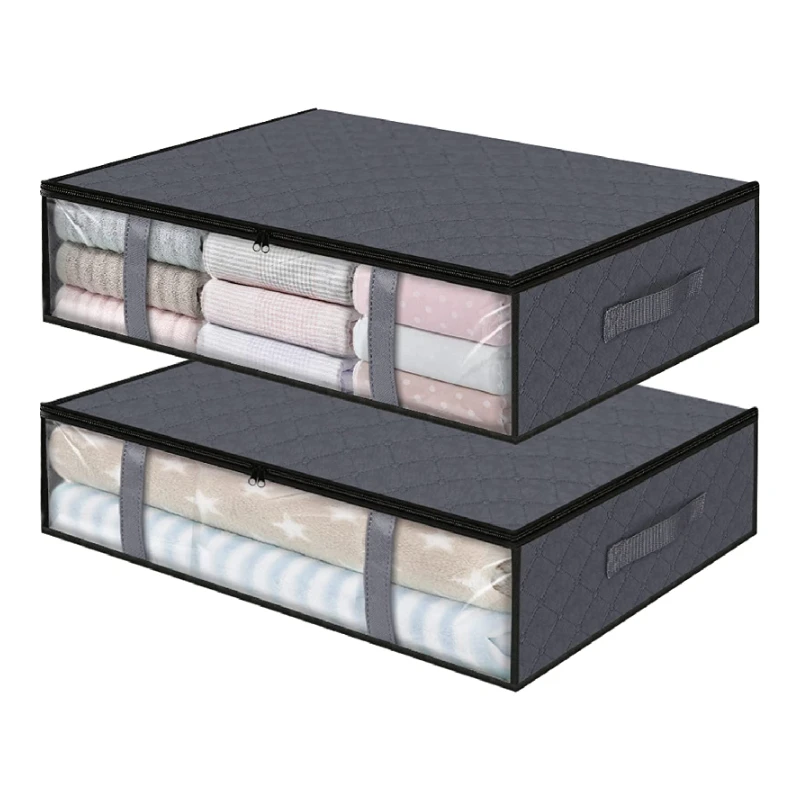 2-Pack Storage Bins Clothes Storage Under Bed Storage Containers for Organizing Clothing Bedroom Comforter Black