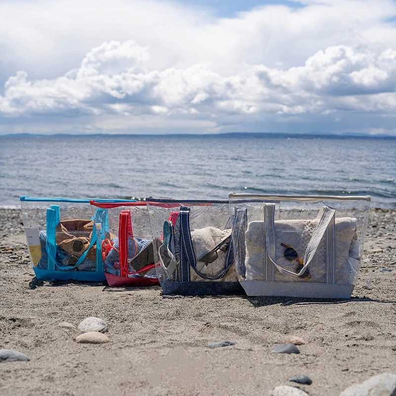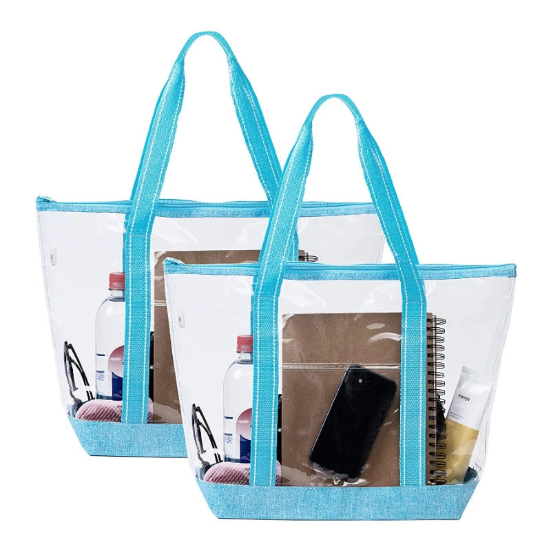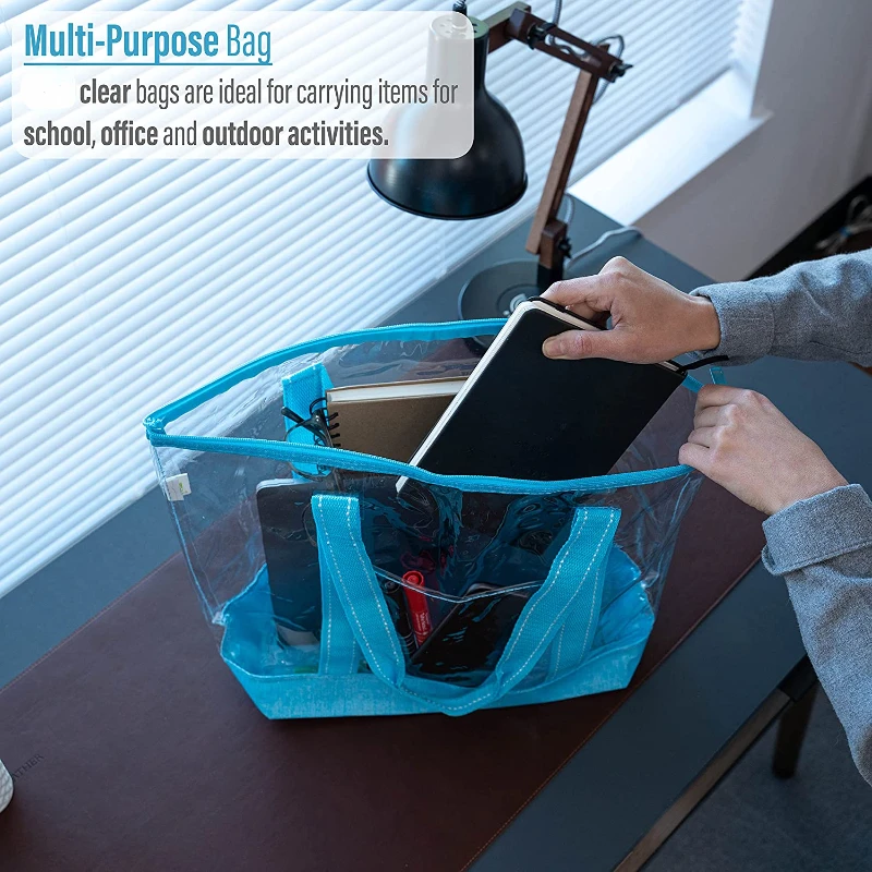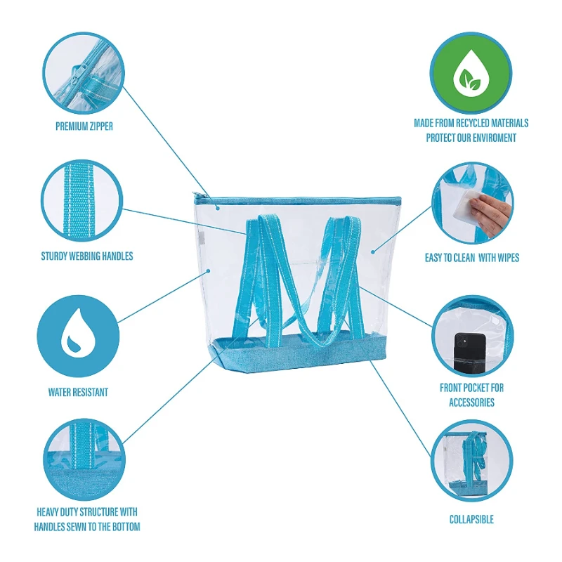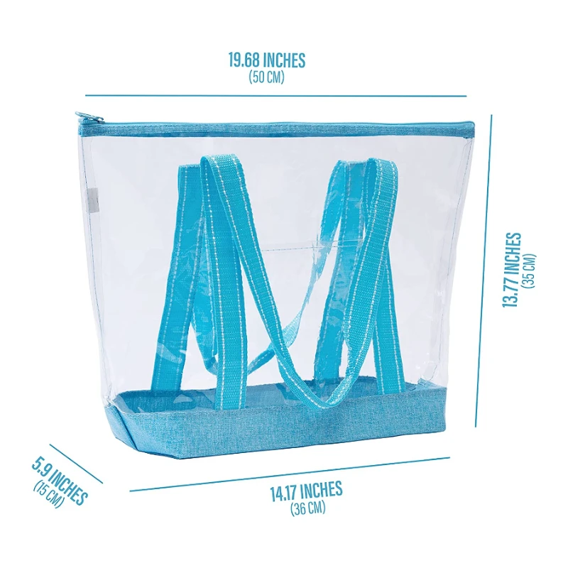 2 Packs Clear Bag Transparent Vinyl PVC Tote Stadium Outdoor Beach Pool (Set of 2 Cyan) Custom Pvc Handbag