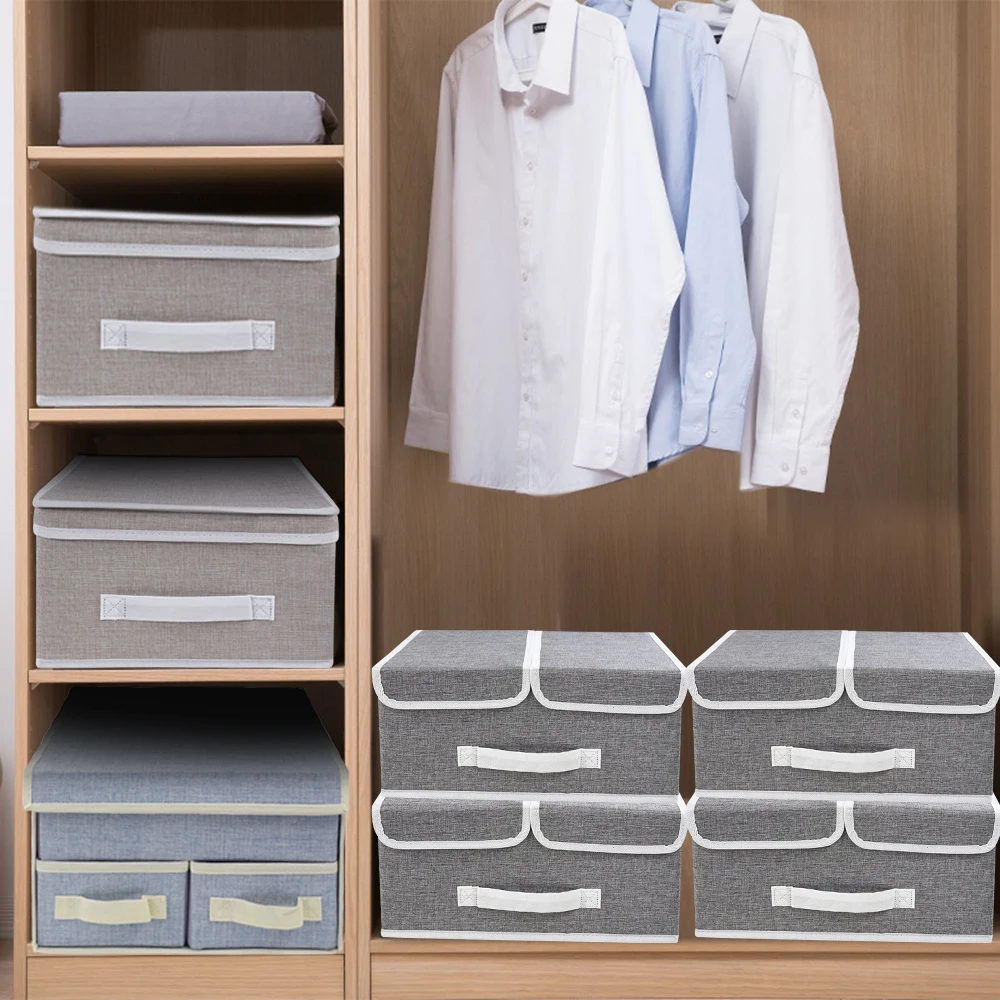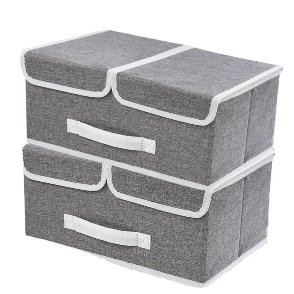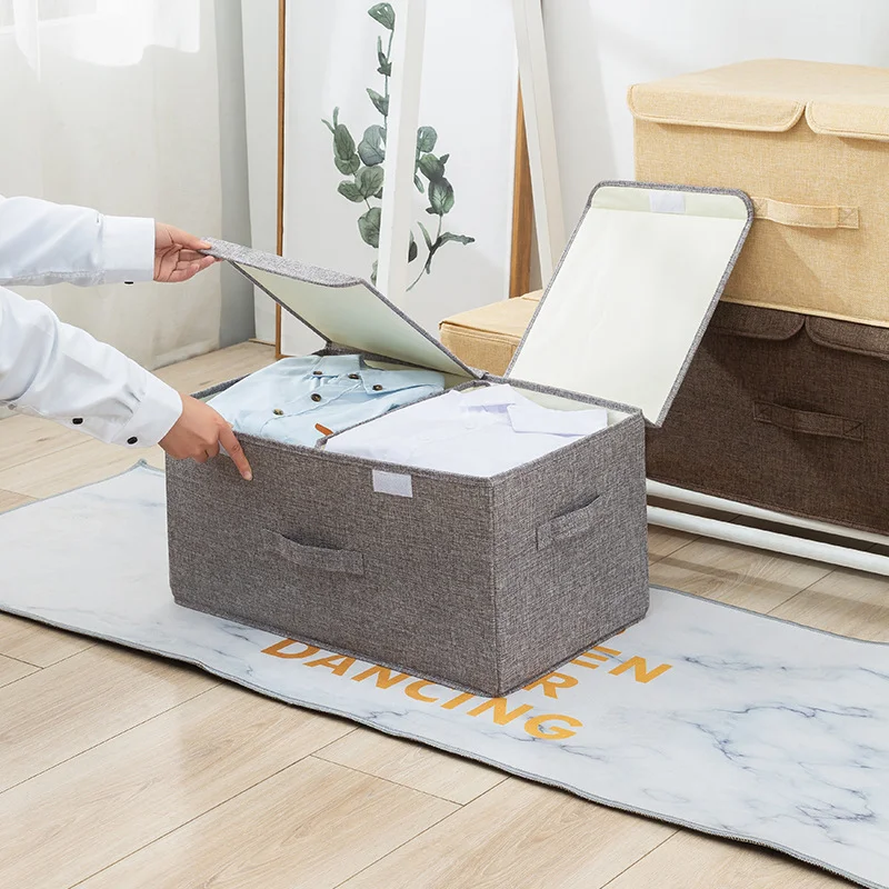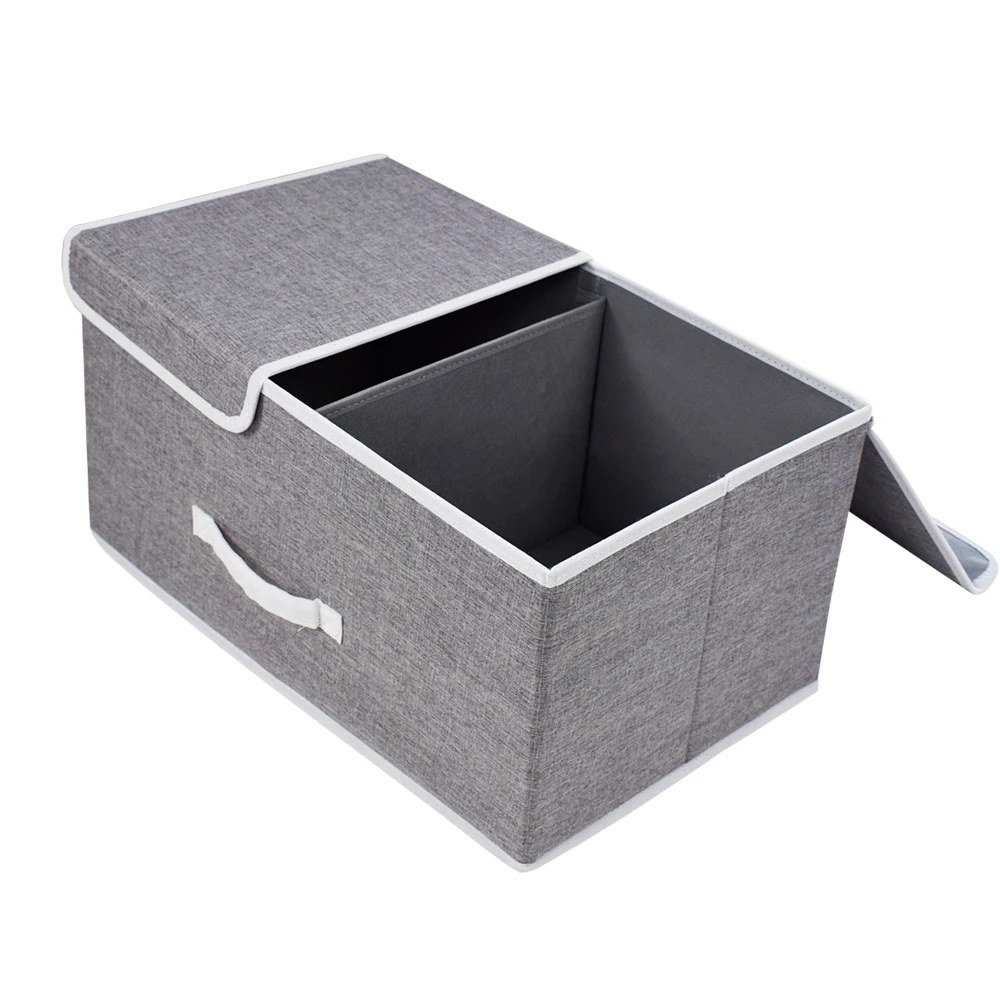 Newest Decorative 300d Polyester Linen Closet toy Organizer box Folding Houseware Storage Boxes & Bins With Double Lid