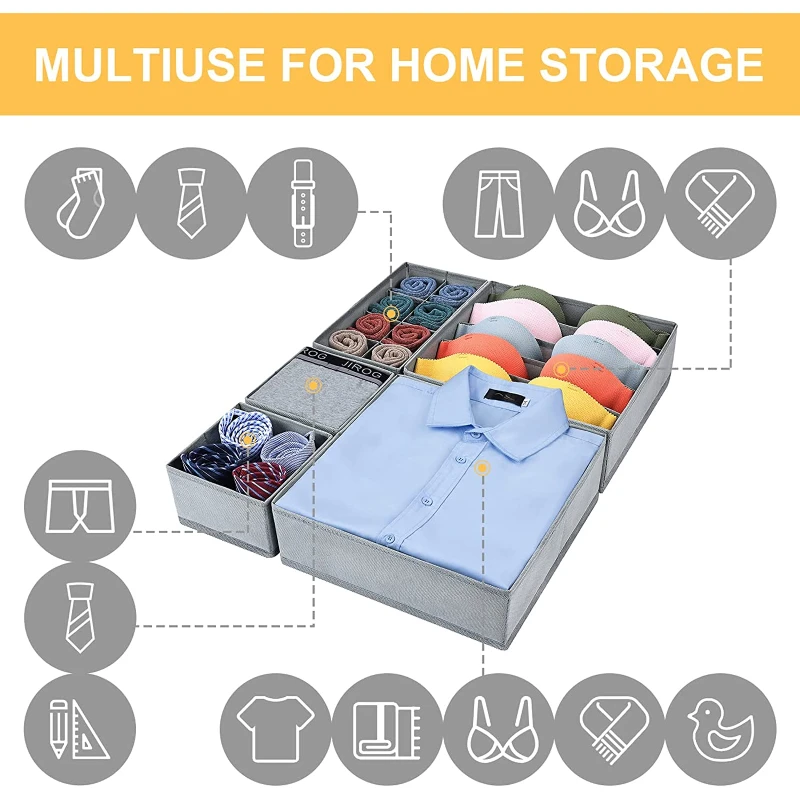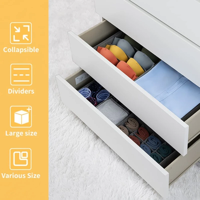 Divided Home Storage Boxes For Tie Socks Bra Underwear Closet Fabric Basket Dress Drawer Organizer