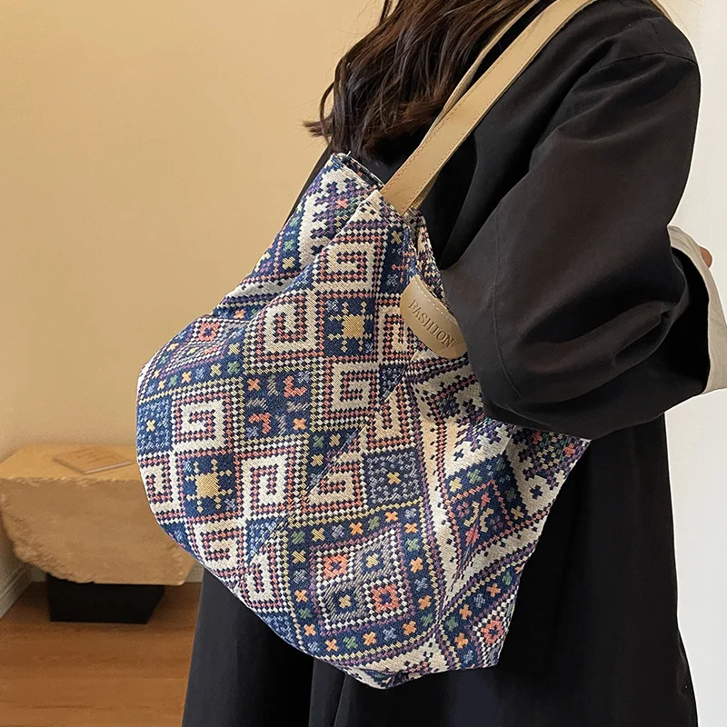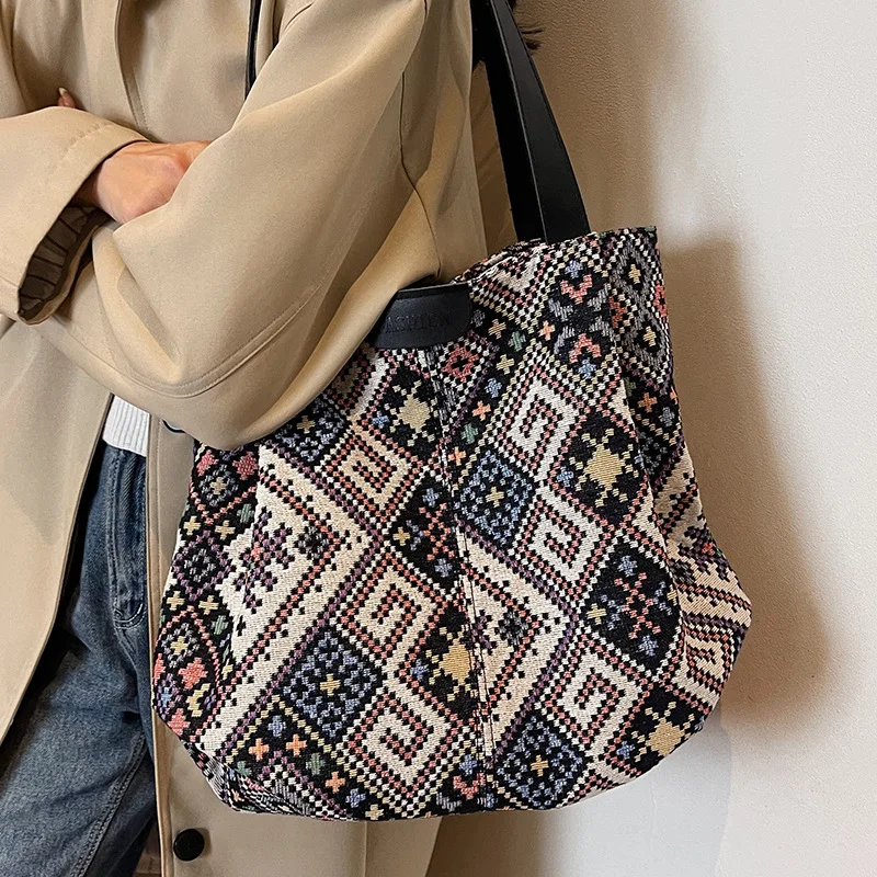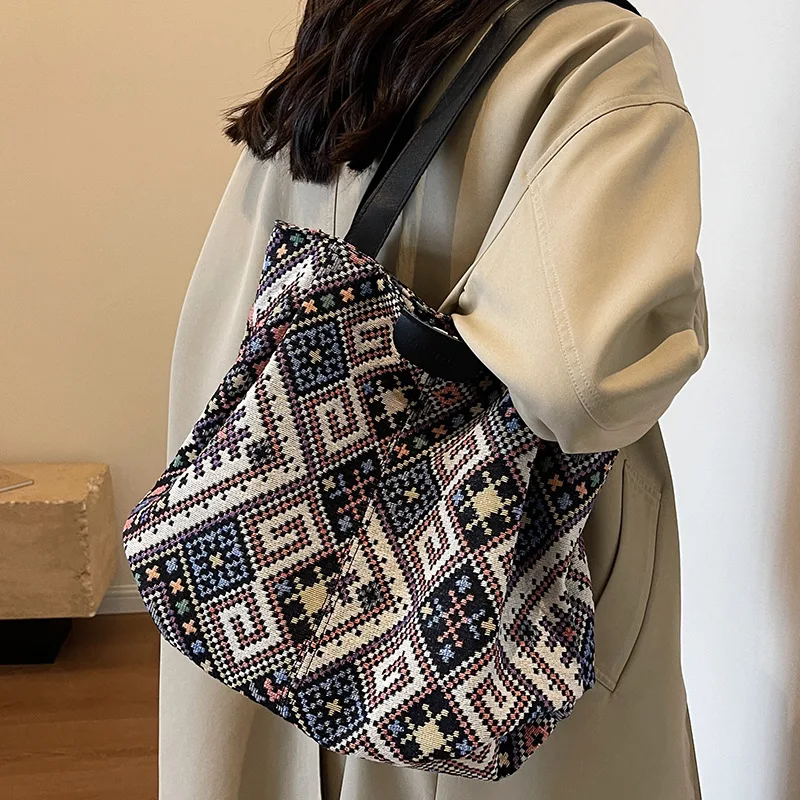 Autumn and Winter ethnic style tote bag women 2023 Canvas tote bagins College student class shoulder bag for women