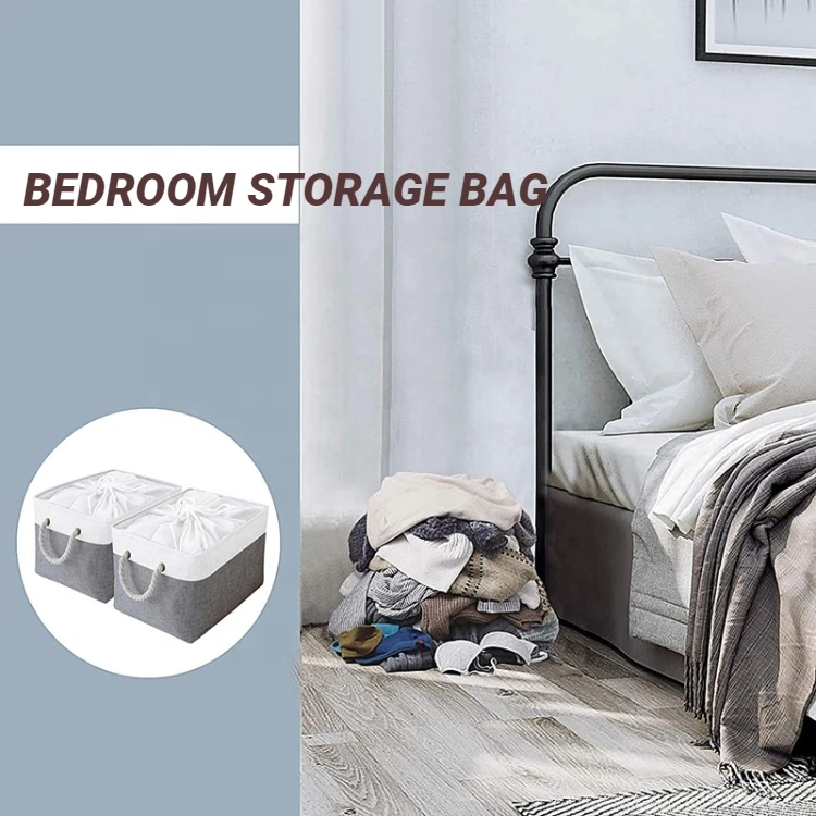 Cotton Linen Fabric Storage Bin With Cotton Rope