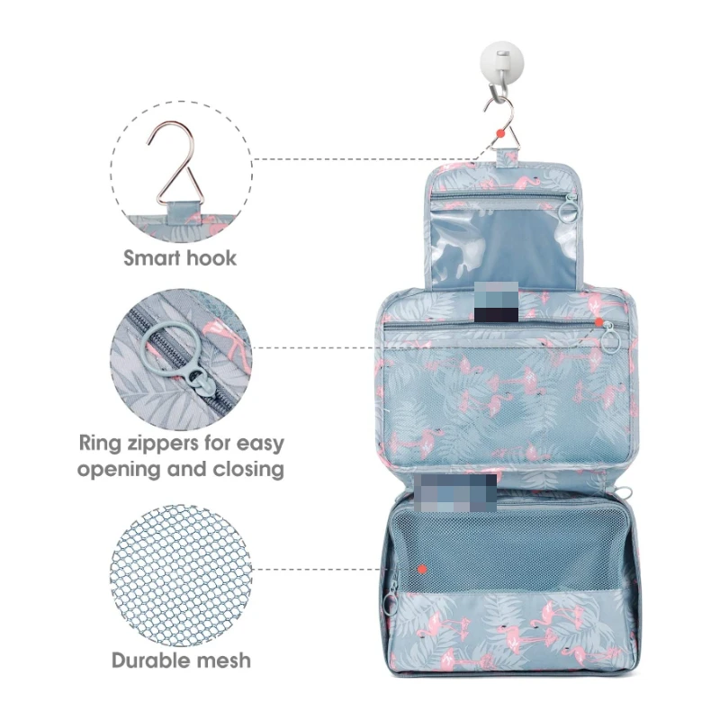 Custom Large Capacity PU Leather Travel Cosmetic Bag Waterproof Hanging Travel Toiletry Bag