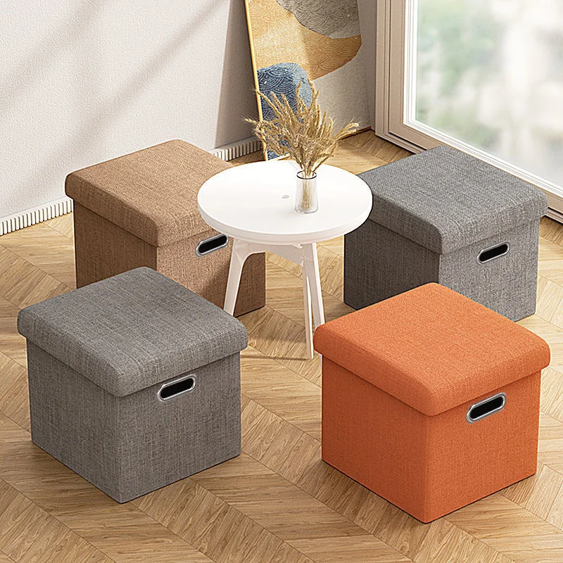 Linen Fabric Wholesale Storage Stools Portable Modern Folding Living Room Storage Stool Home Stool & Ottoman 30/Carton Cub