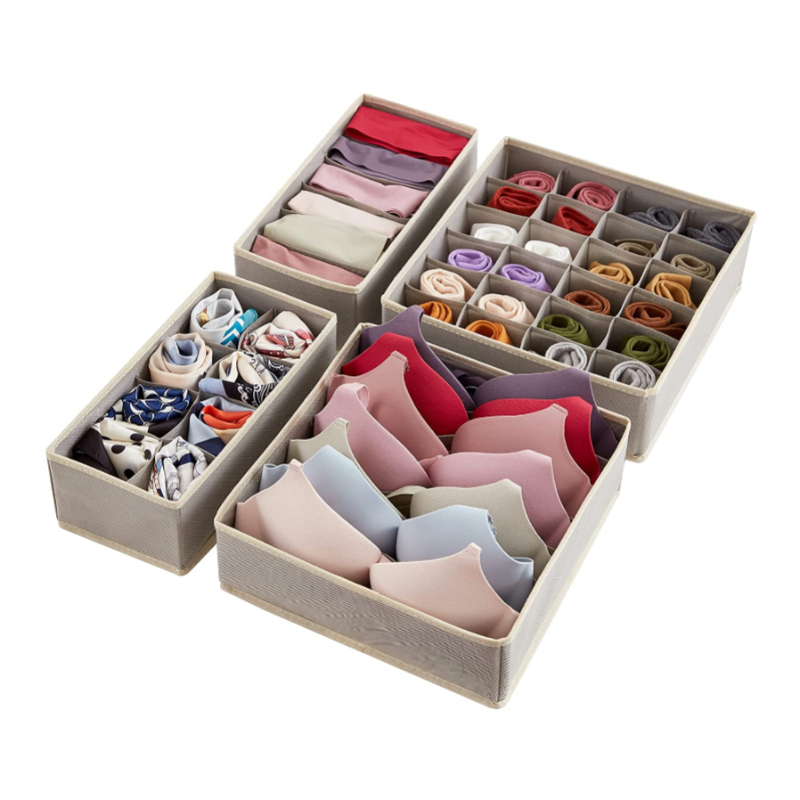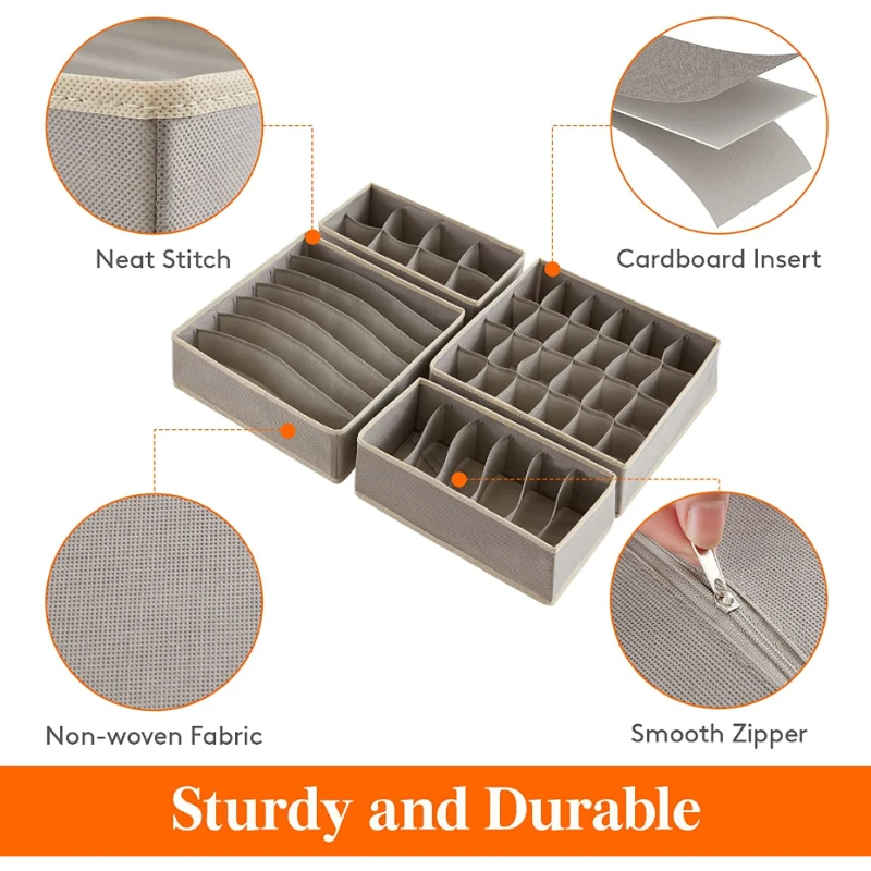 4 Set Houseware Closet Drawer Divider Grey Bra Storage Underwear Storage Organizer