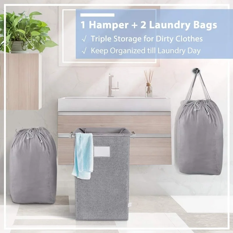 Large Capacity Collapsible Laundry Basket Dirty Clothes Basket Foldable Laundry Hamper with Removable Laundry Bags