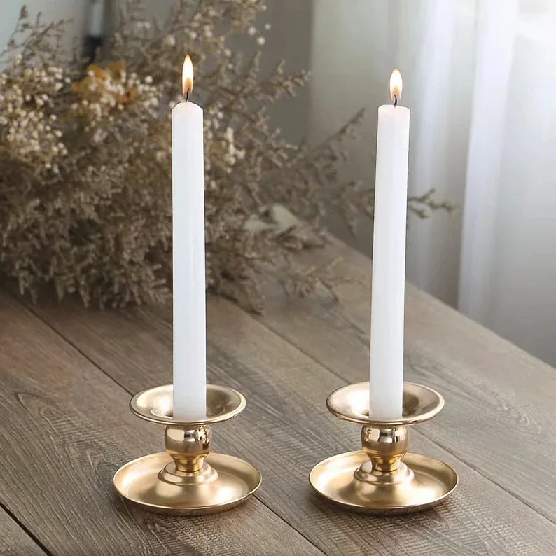 Original Wholesale Modern Home Dinner Decoration Columnar Round Bottom Metal Candle Holder Hot Sale European Home Simple Design Round Bottom Vintage Copper Color Metal Candle Holder