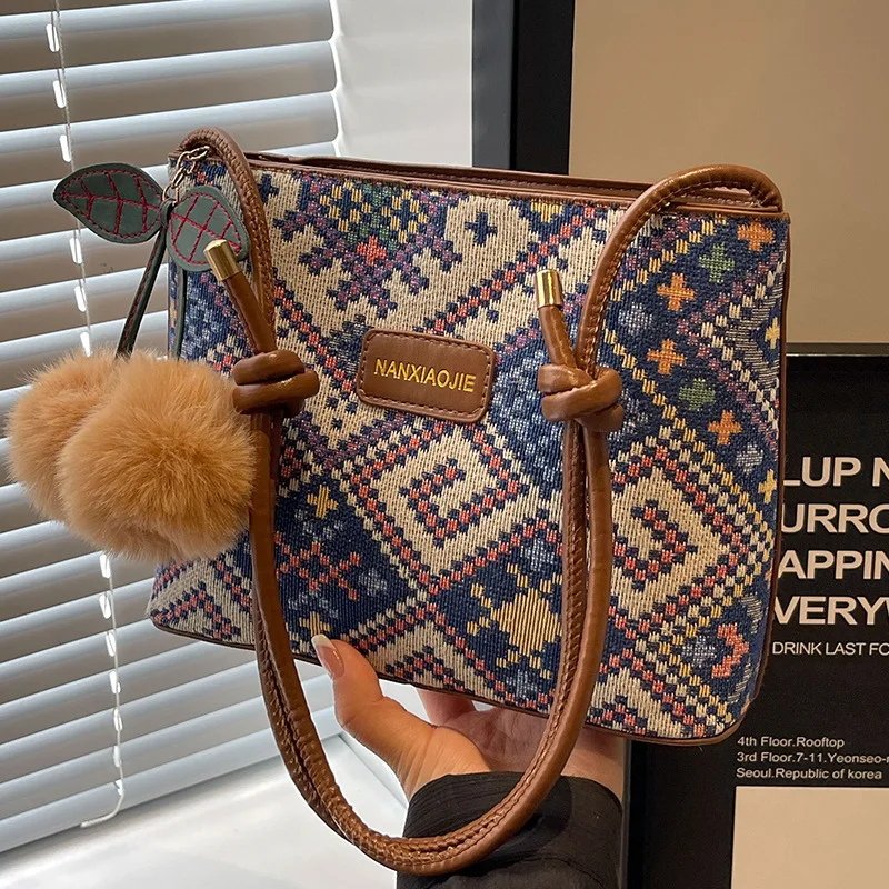 High-grade niche bag for women 2024 New fashion messenger bag for womenins Ethnic style single shoulder bucket bag for women