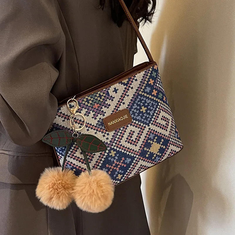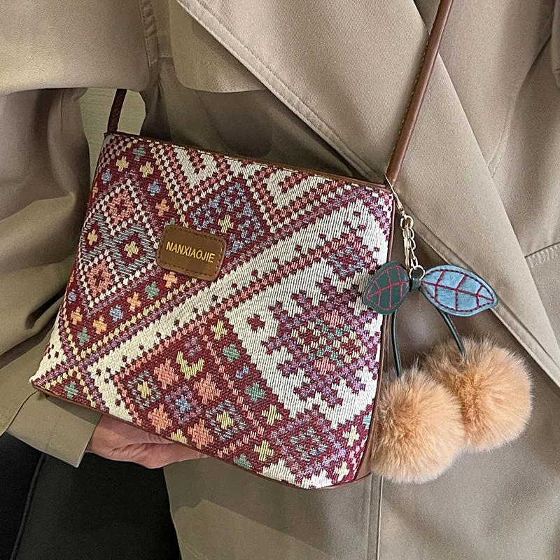 Premium Chinese ethnic style ladies small bag China Zhuang ethnic group brocade style women’s bag Spot wholesale ins wind ethnic style shoulder bag Vintage handbag for women Chinese ethnic pattern traditional totem backpack