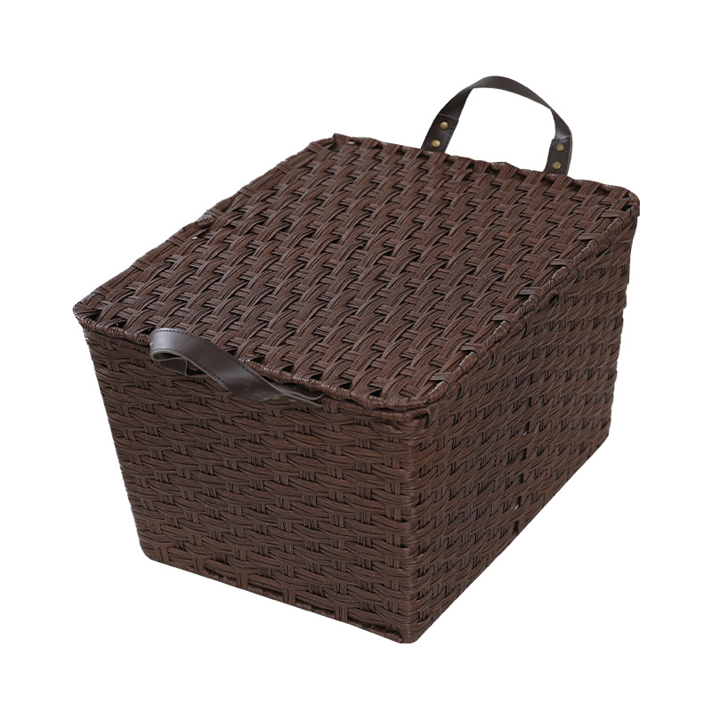 wholesale Imitation rattan storage basket dustproof with cover picnic fruit basket kitchen storage box pvc Woven basket