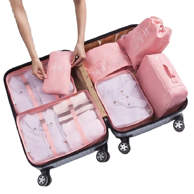 suitcase storage packs Packing Cubes 7 Pcs Travel Organizer Cubes Drawstring Pouch Backpack Travel Bag