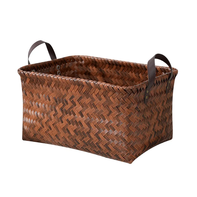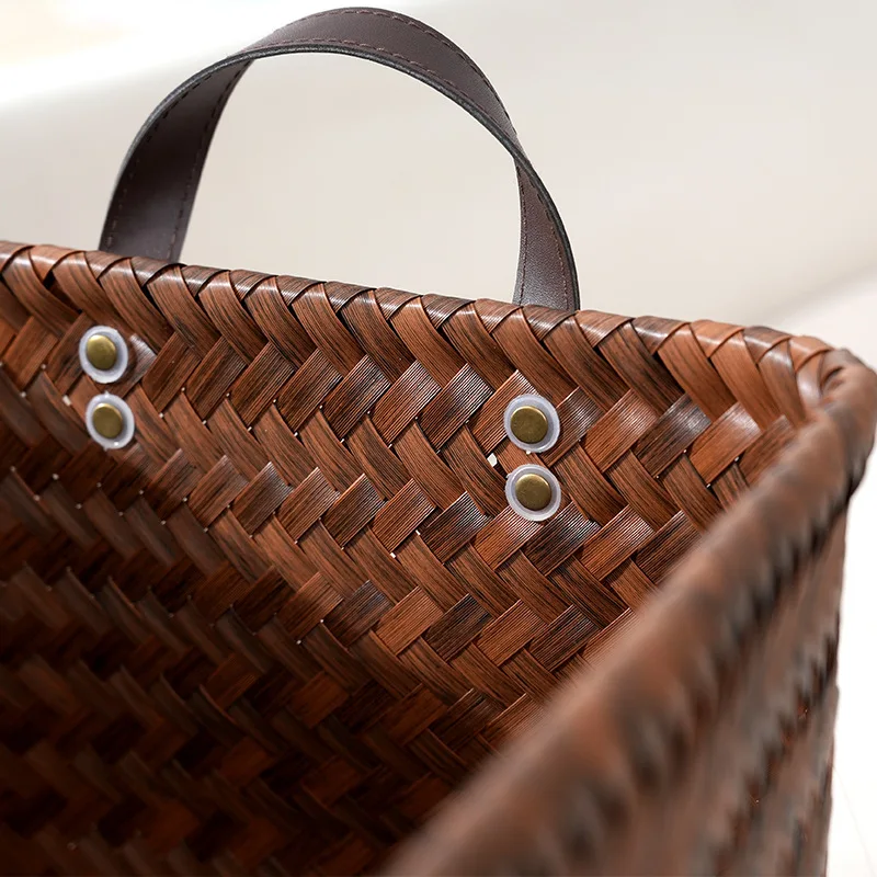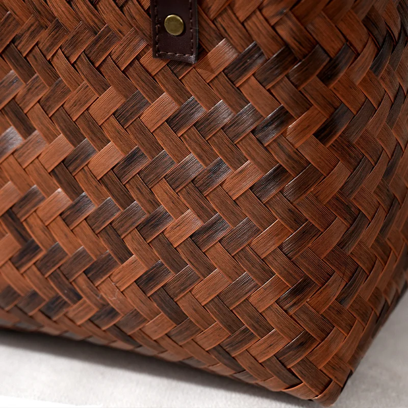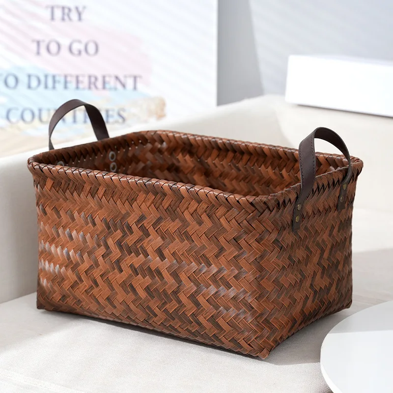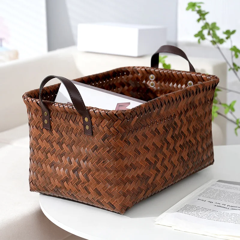 Wicker Storage Baskets for Shelves with Handles Hand Woven Decorative Rectanguler Baskets Bins Organizer for Blankets Clothes Laundry Bathroom Nursery Picnic