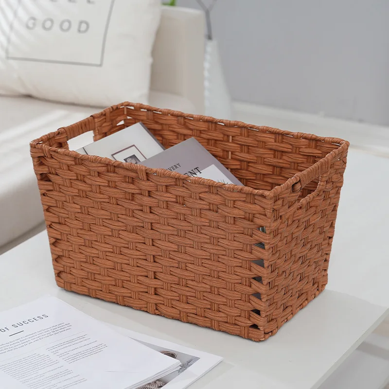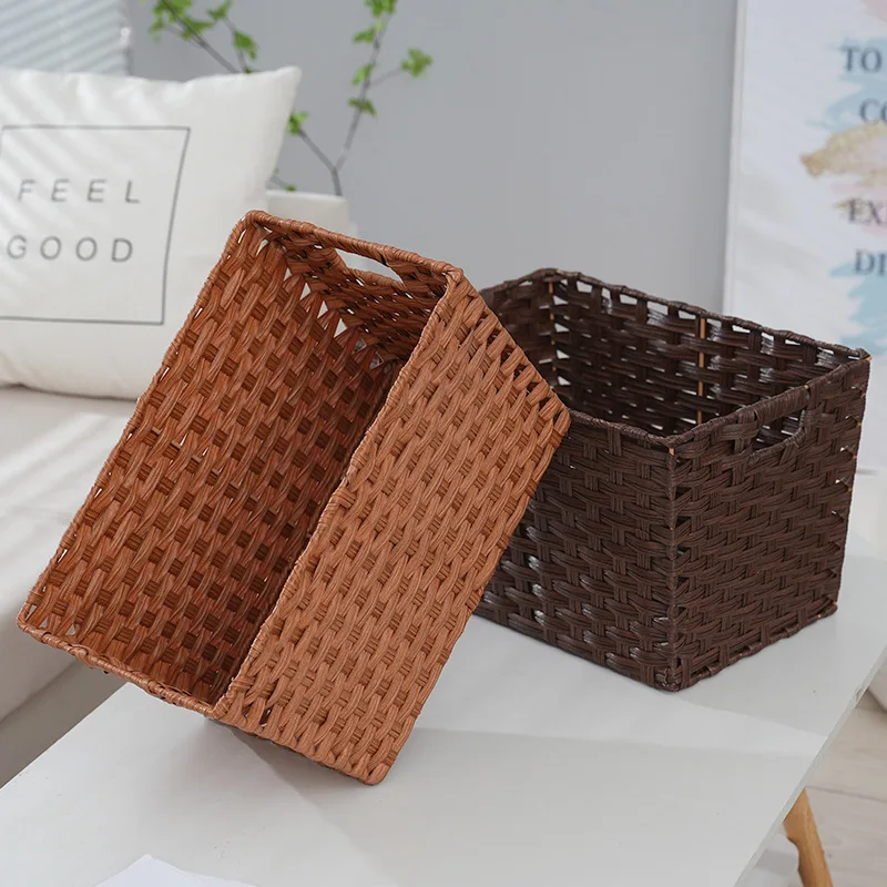 Imitation Rattan Storage Basket Rattan Flower Basket Rustic Desk Home Accessory Woven Makeup Shelf Plastic Storage Bins Vegetable Tray Rustic Table Office Iron Decorative Table Key