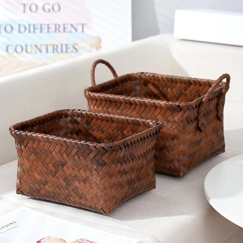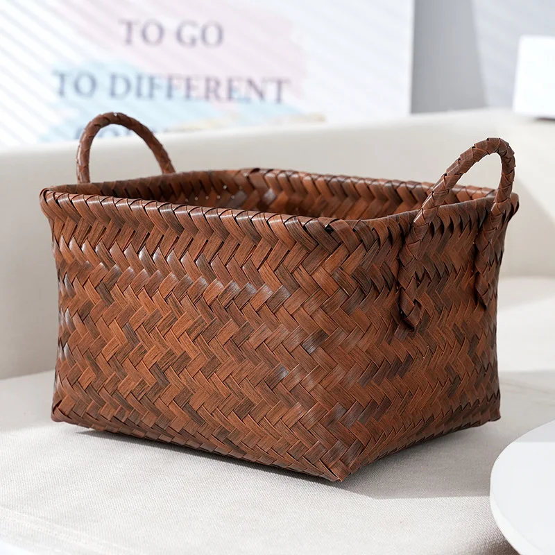 Manufacturer laundry basket waterproof retro domestic dirty clothes storage basket snack toy bucket pvc rattan-like woven basket