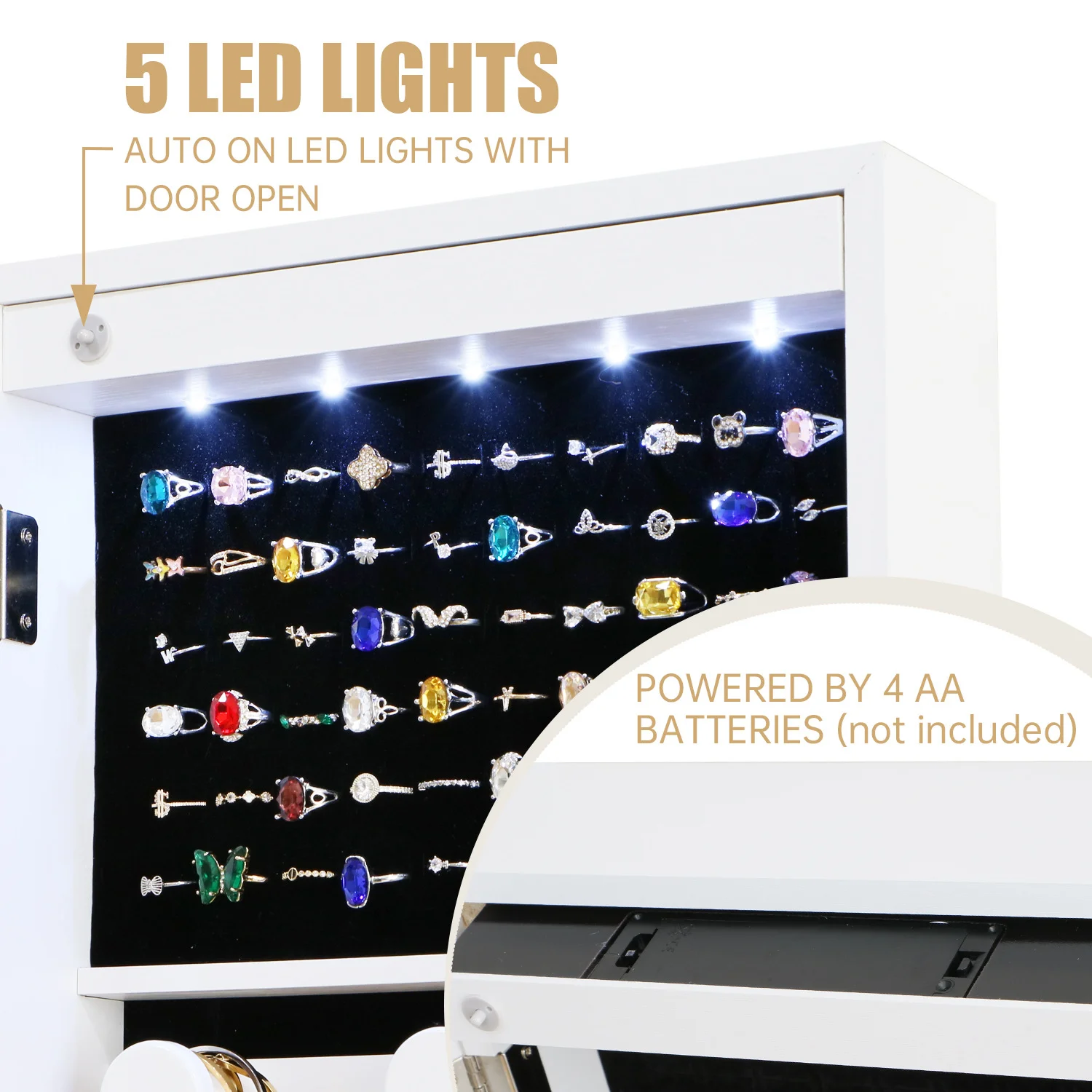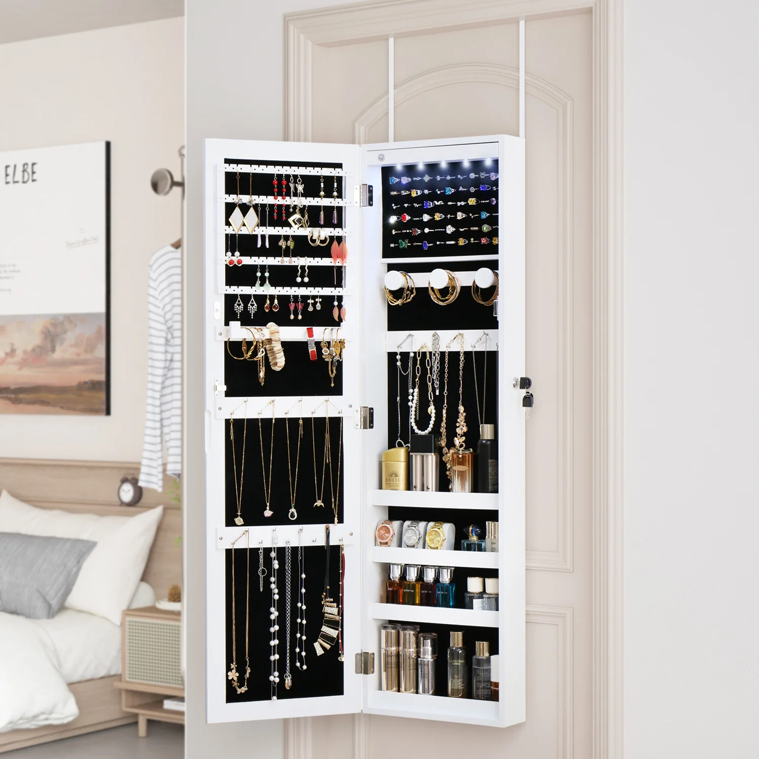 LED Lighted Dressing Mirror Cabinet Bedroom Furniture Jewelry Organizer