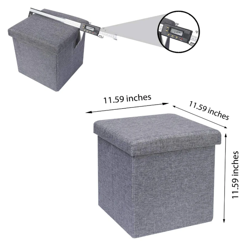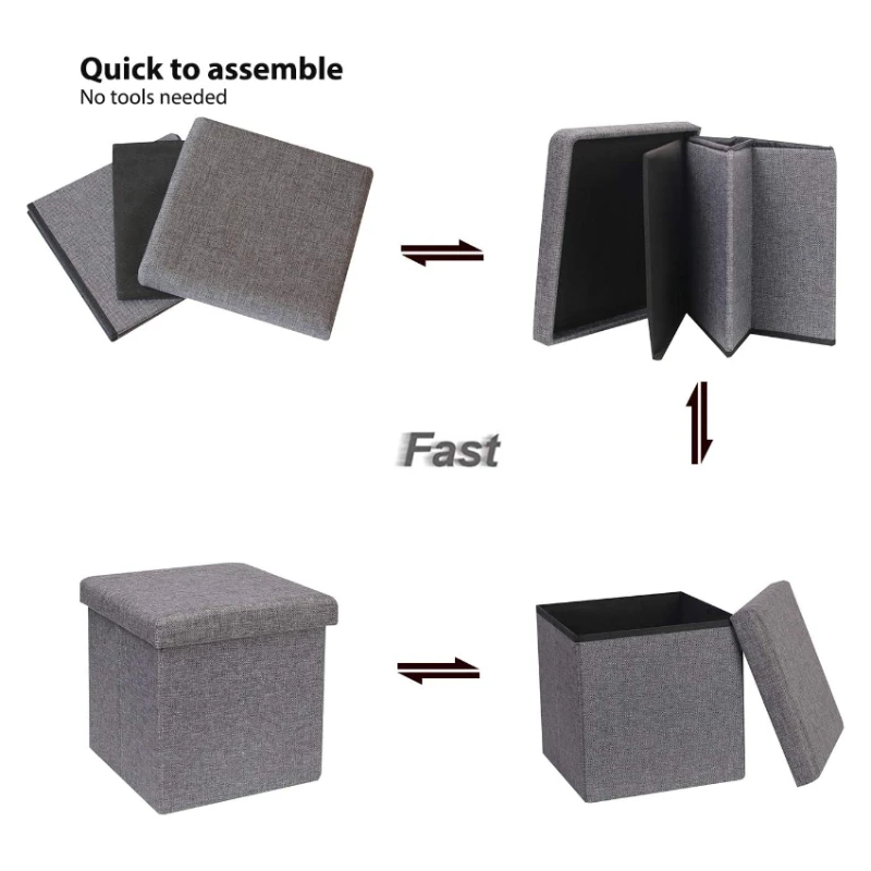 Grey Linen fabric folding storage foot stool ottoman