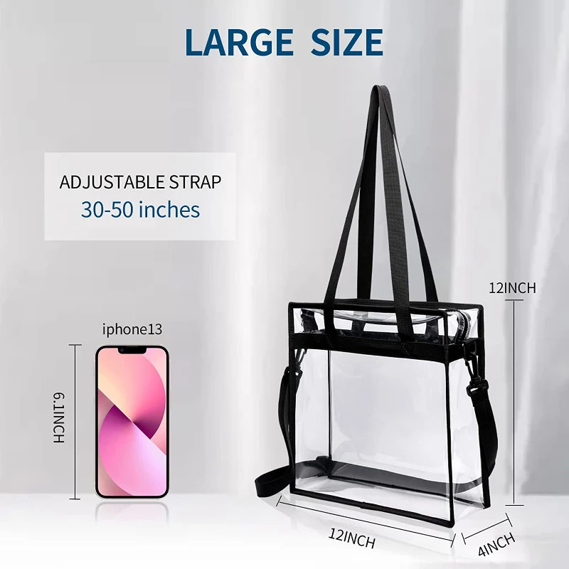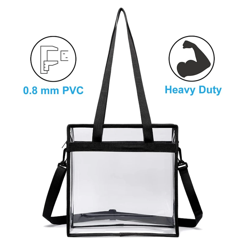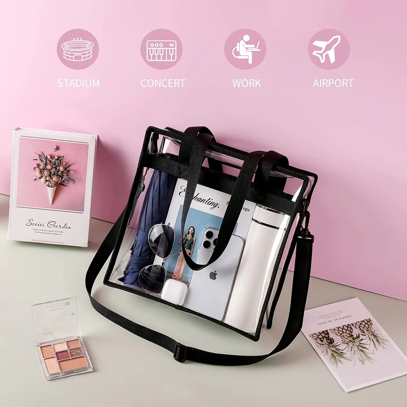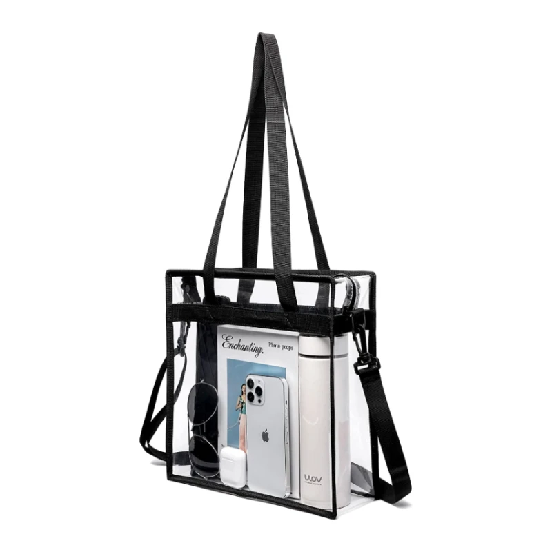 Fashion Portable Clear PVC Tote Bag Eco-friendly Transparent Women Clutch Handbag Purse Pouch With PU Leather Handles