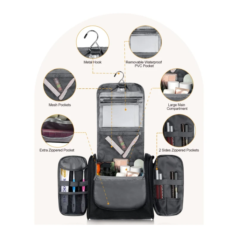 OEM Water-resistant Hanging Toiletry Bag Travel with Hanging Hook Makeup Cosmetic Organizer for Accessories Neceser colgante